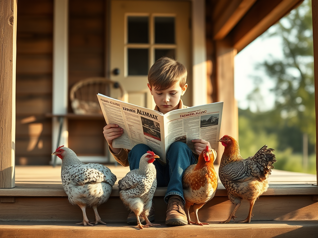 I follow the two hens down the hallway into the kitchen. Grandfather sits at the breakfast table, reading the Almanac. Without looking up, he exclaims, ” going to rain today, The Almanac says around noon.” The last rain the farm had was over a month ago; what does the stupid book know.