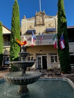 Being a fan of the great Texas movie “Giant,” the Hotel Piasano, where the cast stayed during the 1955-56 filming, was our only historical option. Arriving in the afternoon, the lady at the check-in desk was gracious and friendly. She gave us the “classic” room, which in the hotel language means one that had not been renovated since the 1930s. That’s fine with us; we are interested in the historical value and feel of the place. I noticed some of the rooms were the star suites, so I asked about those. The concierge told us that the Rock Hudson room is available for around half a grand a night and includes a lighted display cabinet featuring the original book of wedding photos from his make-believe marriage. We passed. The Liz Taylor suite was priced the same and included a small lighted curio cabinet showcasing a dainty Italian crystal decanter filled with her spit. Momo said no. The James Dean suite showcased his favorite toiletry in a glass cabinet, his comb, and a half-used tube of Brylcream. No, on that one, too. The concierge did say that our room is rumored to have been the one that Chill Wills occupied, so we gave it a go. She added that the entire hotel is extremely haunted, so beware of ghostly appearances and personal items being relocated.