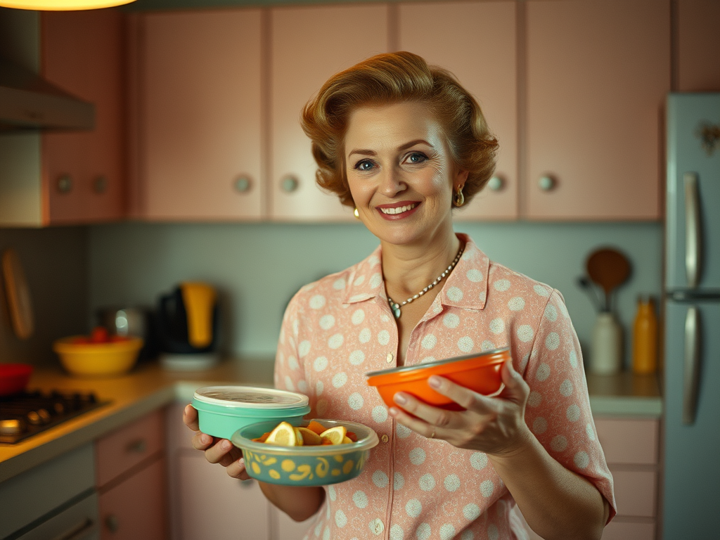 Not my mother, but the Tupperware and the fridge look about right. Ain’t AI fun!