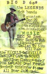 The music they played was all over the place and everything that kept people on the dance floor. The music they played was Soul Music, Beatles, Bee Gees, Rascals, Hendrix, Doors, Steppenwolf, Cream, Stones, Vanilla Fudge, and Jefferson Airplane. They played all over Texas and parts of Oklahoma…and some of the clubs he mentioned were The Studio Club, LuAnn’s, Strawberry Fields, Phantasmagoria, The Cellar, The Box, and more. This was when three of the band were still in high school.